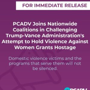 Harrisburg, PA (June 16th, 2025) – The Pennsylvania Coalition Against Domestic Violence (PCADV) joins a nationwide group of state domestic violence and sexual assault coalitions that today filed a new lawsuit…